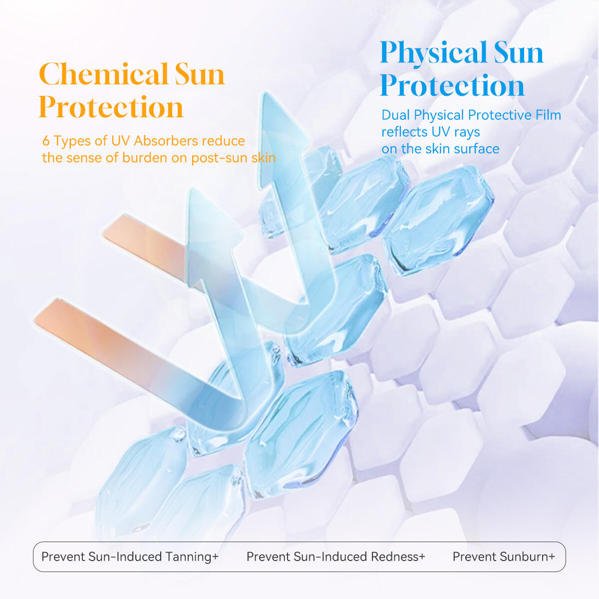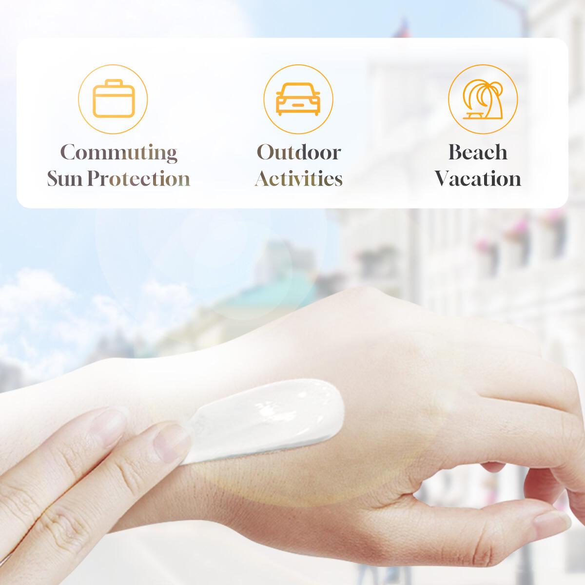 3. [Loção Clareadora, Hidratante, Isolante e com Proteção Solar SPF50+ PA++++] adota um princípio híbrido de proteção solar (física + química). Bloqueia de forma abrangente os raios UVA e UVB, oferecendo uma textura leve e não gordurosa, ao mesmo tempo que proporciona proteção completa à pele — protegendo contra o bronzeamento, queimaduras solares, envelhecimento fotoinduzido e resistindo à água e ao suor.